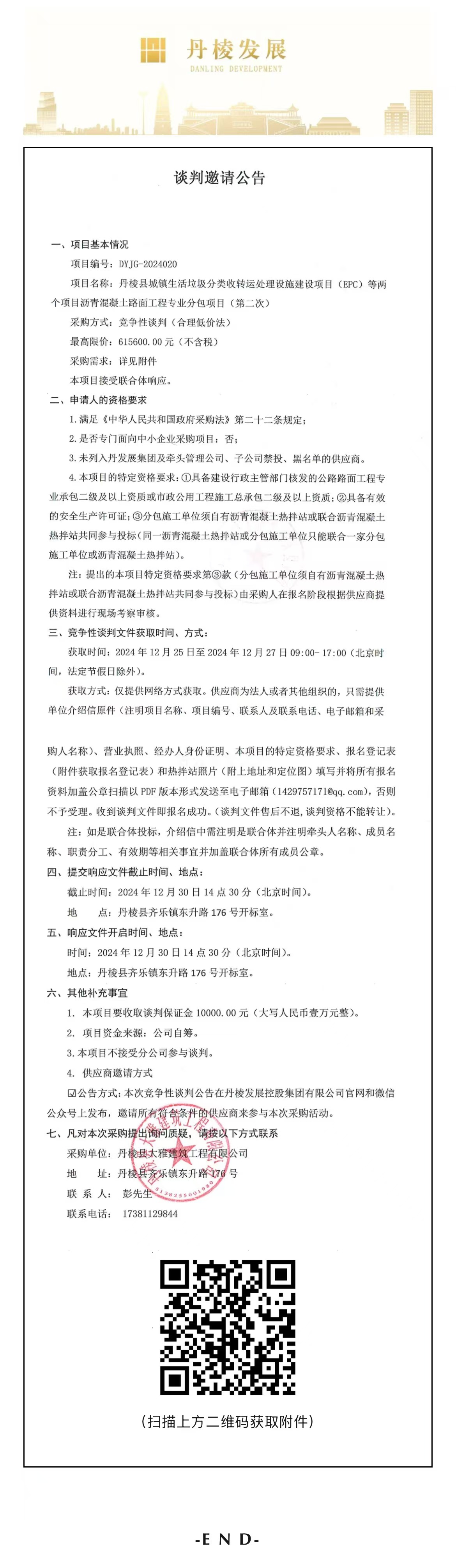 丹棱縣城鎮(zhèn)生活垃圾分類收轉(zhuǎn)運處理設(shè)施建設(shè)項目(EPC)等兩個項目瀝青混凝土路面工程專業(yè)分包項目(第二次)談判邀請公告