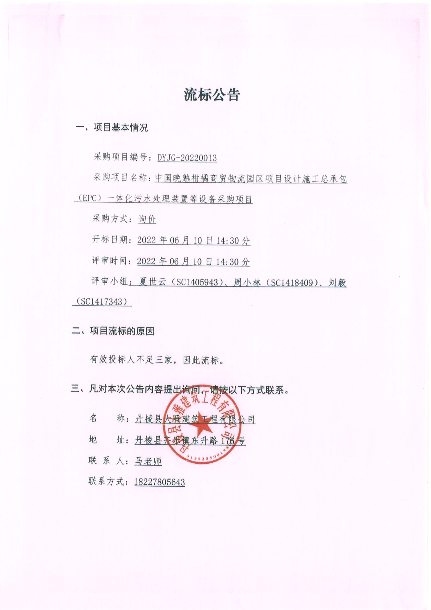 中國晚熟柑橘商貿(mào)物流園區(qū)項目設(shè)計施工總承包(EPC)一體化污水處理裝置等設(shè)備采購項目流標(biāo)公告