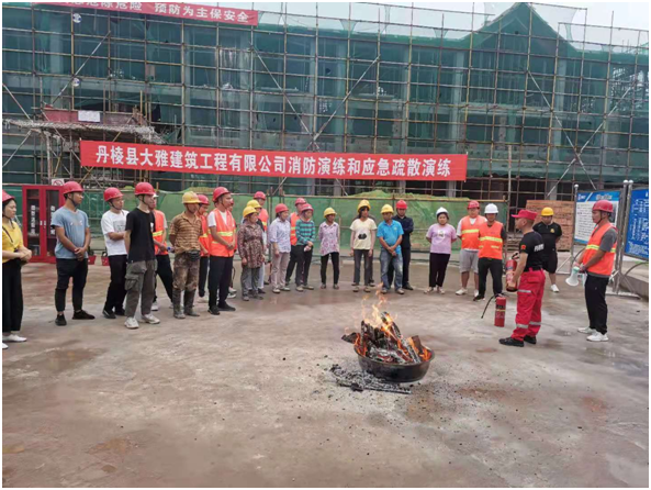 為進一步提高丹棱縣大雅建筑工程有限公司(以下簡稱“縣大雅建筑公司”)全體工作人員消防安全意識和應急處置能力,6月24日,我司在仁美鎮(zhèn)雙橋社區(qū)農(nóng)副產(chǎn)品交易中心項目(以下簡稱“雙橋項目”)施工現(xiàn)場組織開展了一場消防應急演練,此次演練邀請到丹棱發(fā)展投資控股有限責任公司相關領導和部室人員觀摩指導。